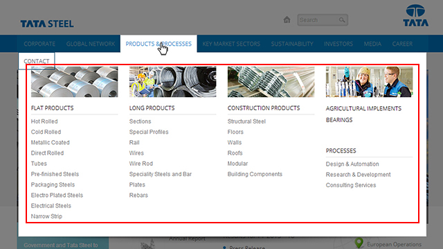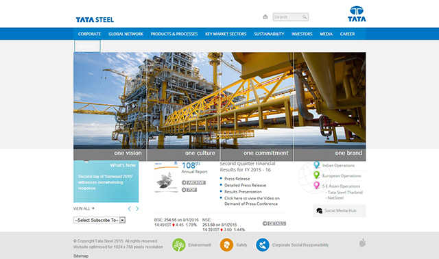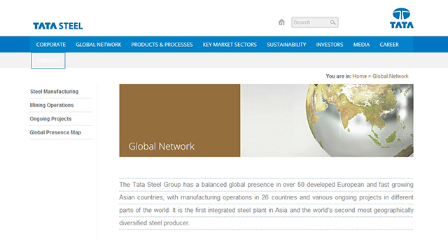 塔塔钢铁公司属于印度塔塔集团旗下。该网站采用了蓝色系,整体风格偏扁平化。
