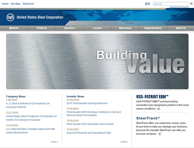 与前面几个网站相比,美国钢铁公司网站显得最传统。