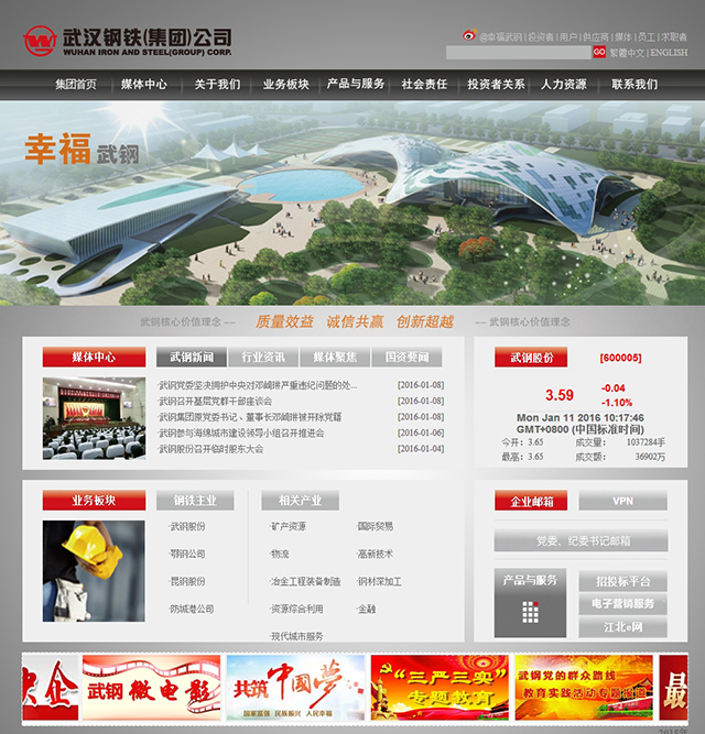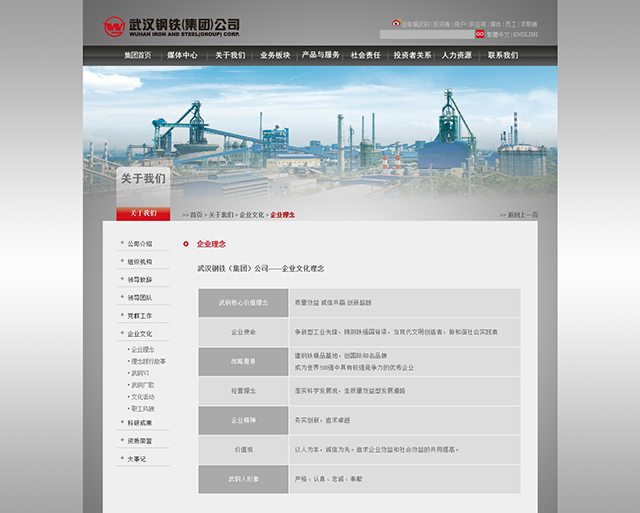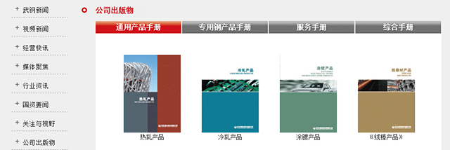 武钢网站以灰色作为主色,整体看起来显得比较沉闷。