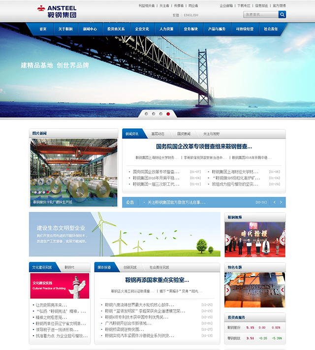 首钢集团网站采用蓝色,图片和文字整体的搭配,有一种清新的感觉,但网站仍然属于传统风格。