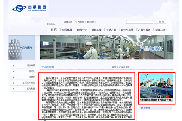河钢近两年在世界钢铁行业排名靠前,但网站只是展现企业基本情况,并没有属于自己的特色。与作为大企业所具备的实力相比,网站显得过时、落后。